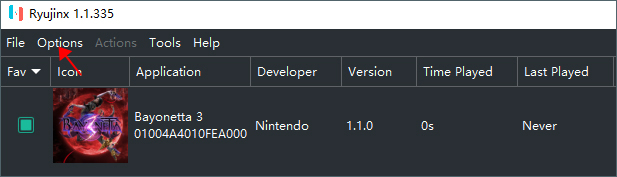 2、执行模拟器,并自动加载猎天使魔女3,需要为模拟器配置手柄或者键盘、鼠标,首先点击右上角的options选项;