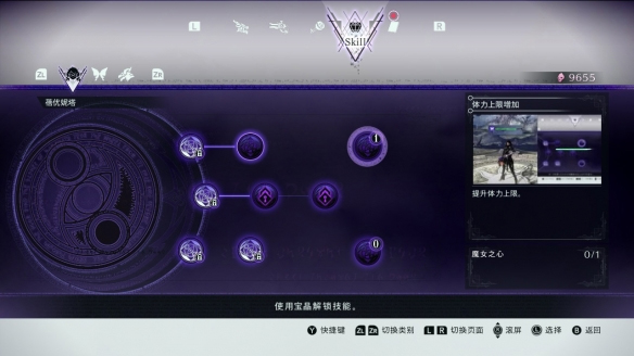 技能界面,玩家可以花费宝晶习得新的技能,技能页面会根据【武器-魔兽】来进行分类,玩家可以按Y键来进行快捷挑选分类。