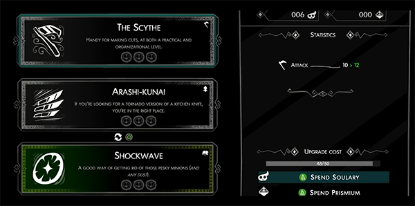 虽然技能组合并不算复杂,但游戏操作起来让人特别满意。你的主武器镰刀挥舞起来速度很快,很容易就能配合跳跃和快速冲刺打出连击 。