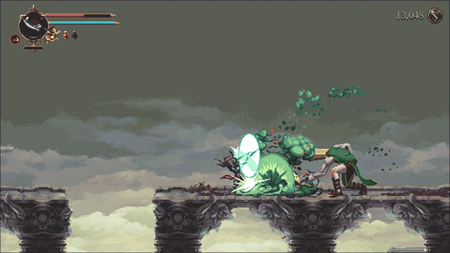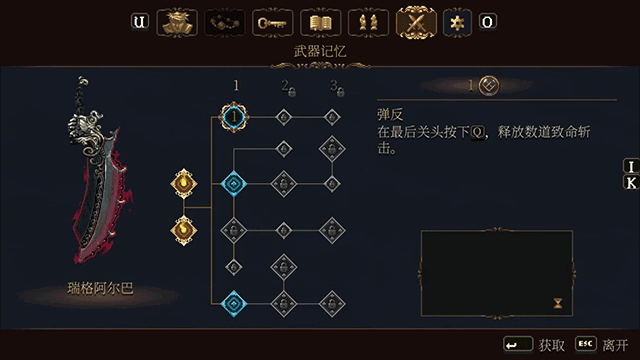 游戏中,玩家可以在一些特殊场景收集到可以升级武器的点数,你可以使用点数来依次解锁武器的不同能力。比如,吸血剑可以解锁献祭HP来提高武器性能的强化能力;双剑则可以获得多种多样的进攻招式;战争香炉则可以在地面、空中连段中直接进入强化状态,获得更自由的战斗节奏。