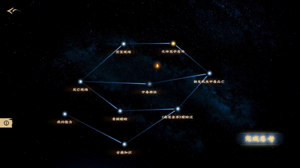 进入推理,分析【死亡现场】选择【密室现场】、【中毒特征】、【青铜蟾蜍】。