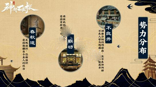 由于不良井的特殊原因,造成了几大势力在这里纠葛,也就是神都不良探故事开始的地方。太平盛世的表象下,实则暗潮汹涌。各大势力看似与不良井内的纷争并无关联,实际难脱干系。