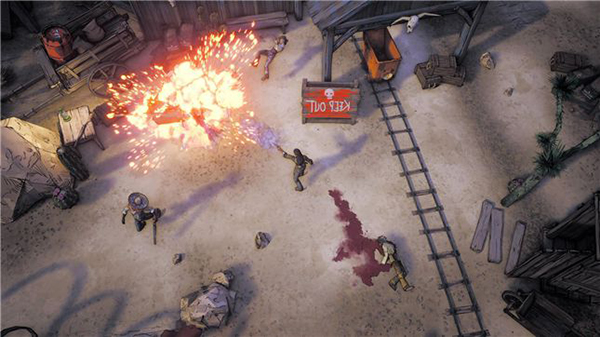 诡野西部是一款俯视角射击游戏,也就意味着你需要亲自瞄准……这使得传统 CRPG 中的策略彻底成为了历史。