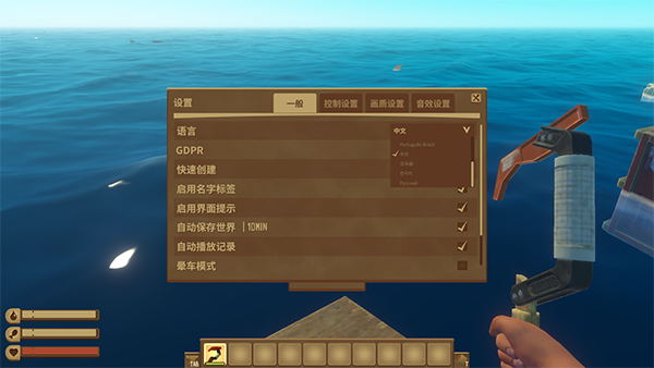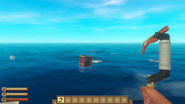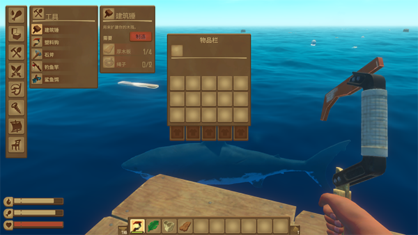 2、确保木筏有足够燃料和储物空间,携带基础工具(钩子、斧头、建造锤)。