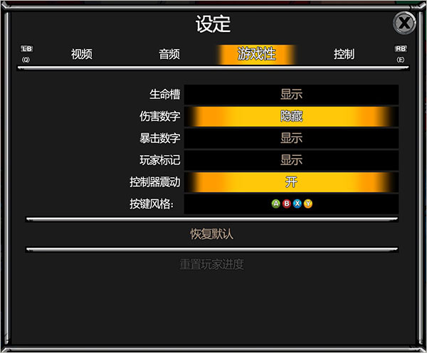 4、在游戏性中可显示或隐藏生命槽、伤害数字、暴击数字等,以及按键风格;