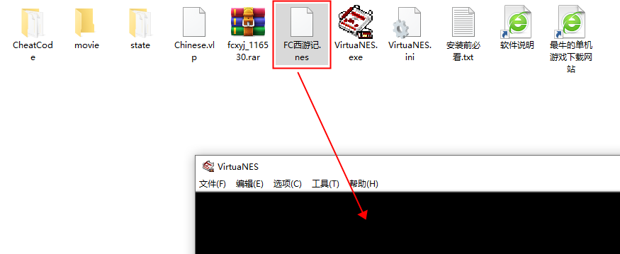 3、最后将FC西游记文件如下图所示,直接拉拽至模拟器中即可!