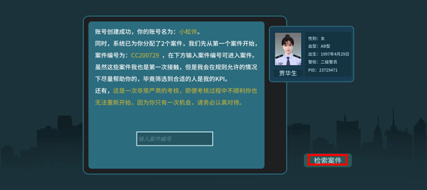 3、接下来就是输入你的名字了,系统将会为玩家创建账号并分配案件。