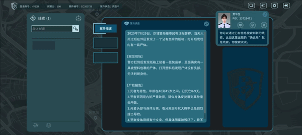 作为受测者的你,需要在系统规则下经历近似真实的案件破解过程。提取关键信息,抽丝剥茧地寻找案件的蛛丝马迹。