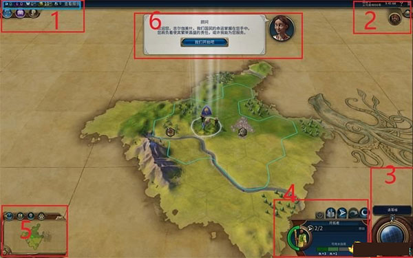 1:上方蓝色信息是科技、文化、信仰、金钱的资源情况。通过相关的修建和研发和提升每回合的产出。