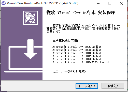 微软visual c++运行库合集包可解决以下文件缺失问题