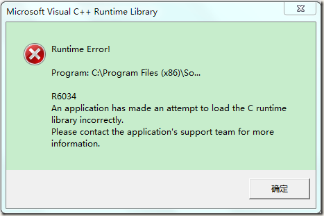 1、当出现下图时提示Microsoft Visual C++ Runtime error,