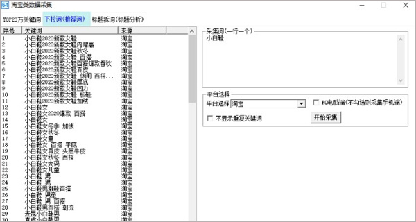 7、点击输入采集词可以搜索下拉推荐关键词。
