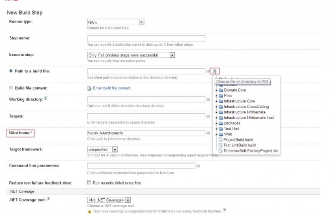 配置路径(因为配置好了VCS的root,因此可以通过choose来选择编译项目的path),配置NAnt的环境变量(安装它的位置),因个人安装位置而异,