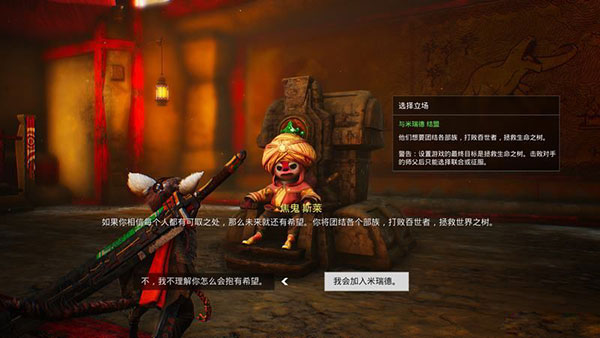 每个部族都有特殊的武器奖励,不同的选择会在结局时有所不同。