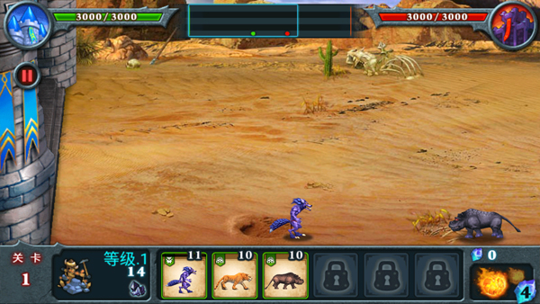 4、集中火力攻击强力怪物。在后续的关卡中敌方会出现高级兵种,比如第10关的巨龙。这些兵种实力非常强,我们需要堆积更多的兽王来对付他们。