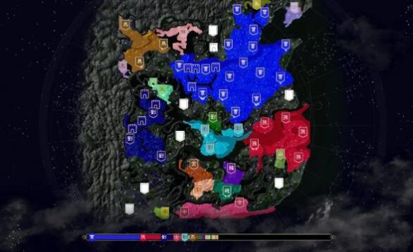 4、游戏的地图展示了使用简化的颜色系统捕获的领域,你将在大片属于你颜色的疆域中找到征服的快感;