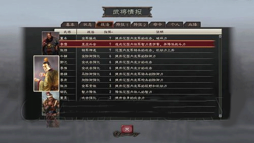 如下图,在观察我们手下将领的时候,同时也要注意他们各自拥有的野战和内政特技;方便各自分配任务