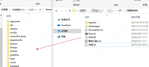 2、把得到的Heroes.of.the.Three.Kingdoms.8.Steam文件夹复制到,X\Steam\steamapps文件夹中(steam的游戏文件存储文件夹);
