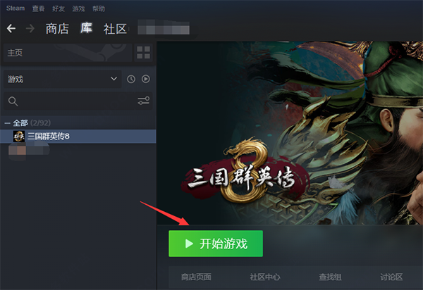 4、然后会自动启动Steam,我们可以在游戏库发现有了该游戏,双击开始游戏即可;