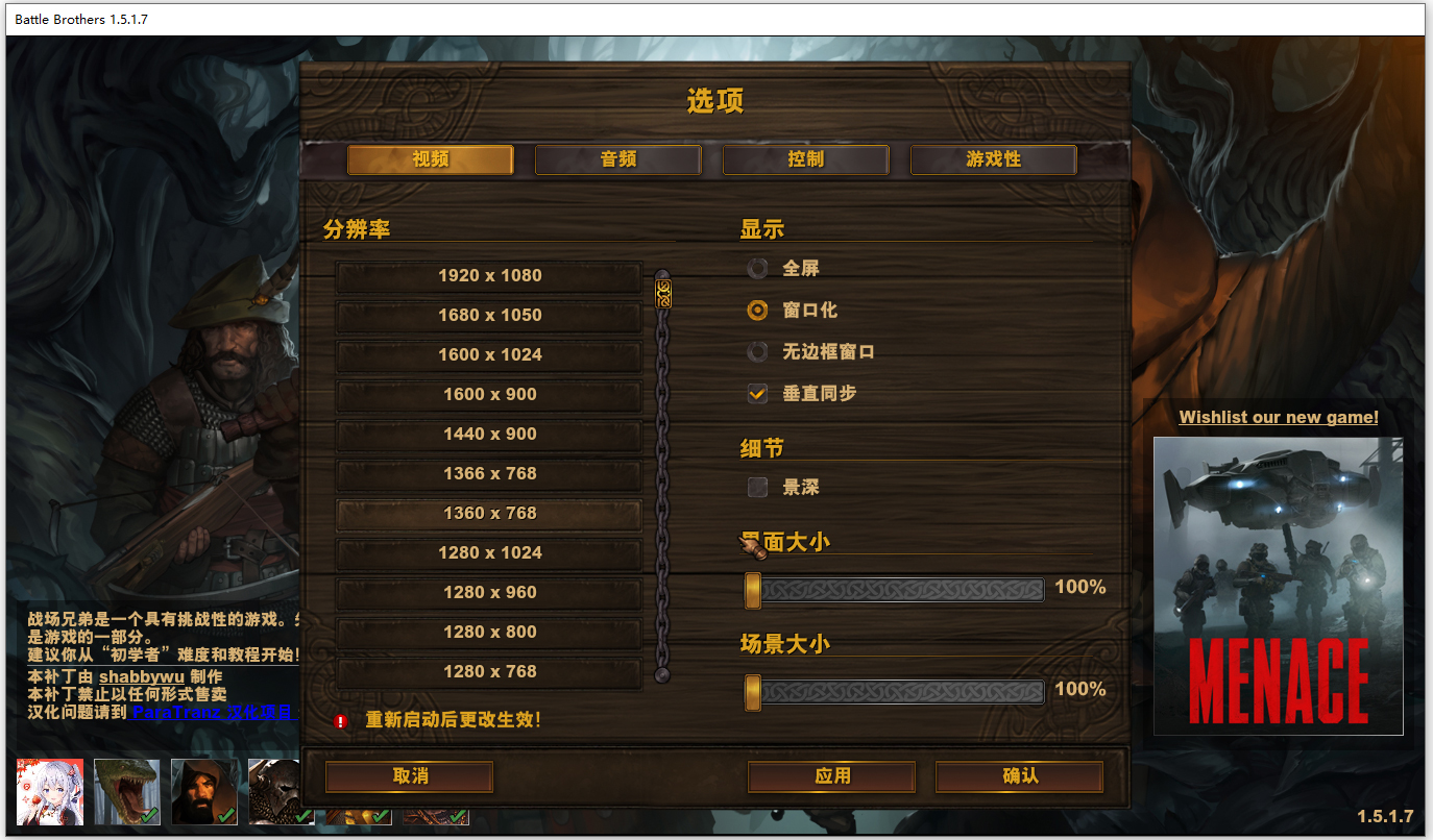 5、点击选项,可以设置分辨率,全屏,窗口化,景深,音频,控制,游戏性等;