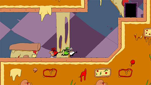 2、独特角色与场景:主角Peppino是一位肥胖秃顶的意大利厨师,拥有滑稽的奔跑姿势和夸张的战斗动作。场景中充斥着会动的披萨、奶酪怪物等荒诞元素,充满想象力。