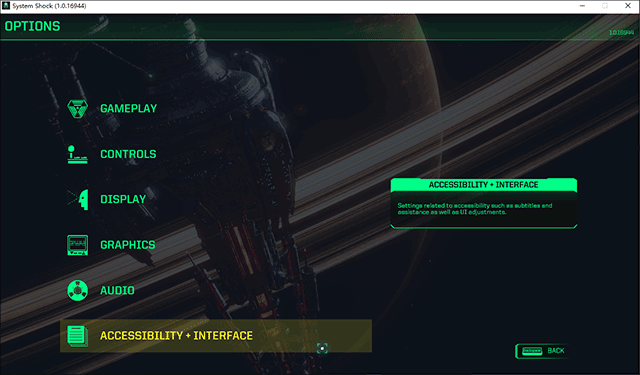 2、在options界面选择并点击“ACCESSIBILITY + INTERFACE”的选项;