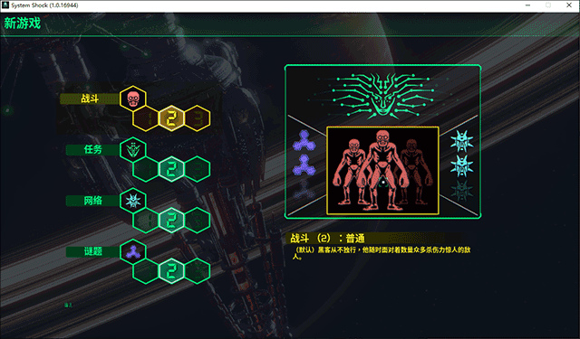 5、然后在进入游戏前,玩家需要在这里对游戏的战斗难度、任务难度、网络难度、谜题难度进行设置,完成后就可以进入游戏了;