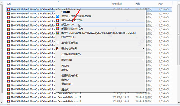 3、随便选中一个文件,鼠标右键选择“解压文件”。