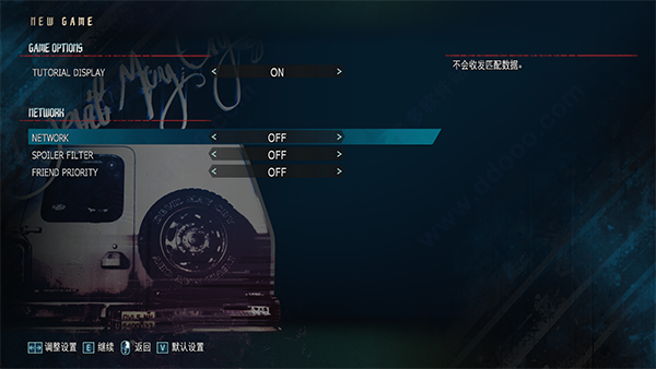 3、进入游戏后,请把NETWORK里面的3个网络选项全部关闭OFF,否则可能出现卡联网验证的问题。