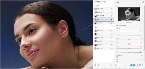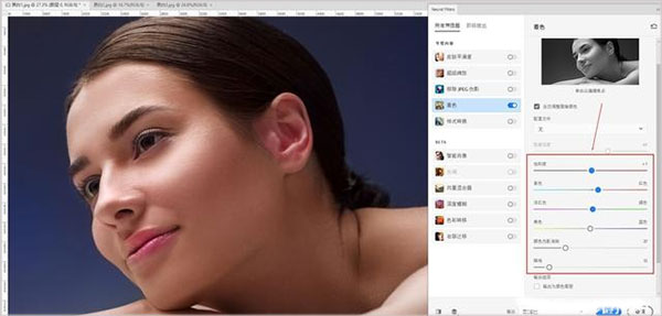 3、当我们打开着色功能后,可以看到颜色还是添加的很自然的,这个功能很时候将黑白的老照片进行着色处理,也可以将以前去掉颜色信息的黑白图像进行智能的着色;