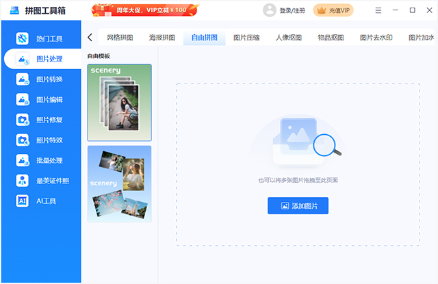 除了拼图功能,它还有许多实用的工具,比如图片格式转换、批量压缩、人像抠图等,完全可以满足日常的图片编辑需求。尤其是人像抠图功能,清晰无毛边,特别适合处理背景更换或尺寸调整。