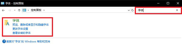 1、进入控制面板,在搜索栏搜索字体,点击进入。
