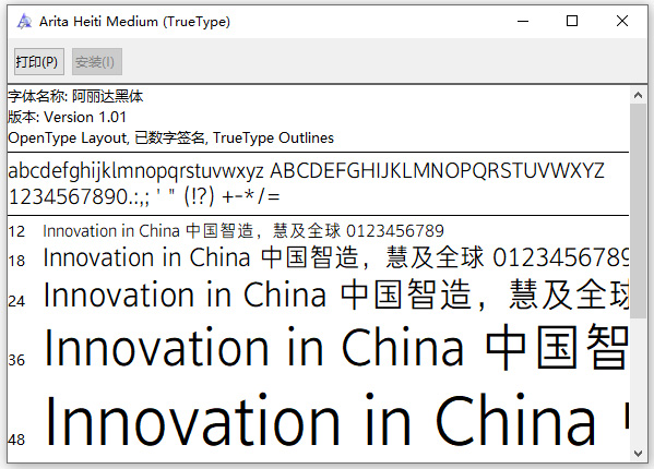 4、每个字母和汉字都经过精心设计,字形饱满而稳定,给人一种清晰、易读的感觉。