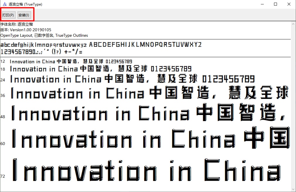 ②可以看见左上角的打印和安装,点击安装即可安装成功,有需求的还可以打印出来哦