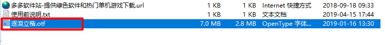 ①在本站下载安装完成之后,解压缩【逐浪立楷.otf】