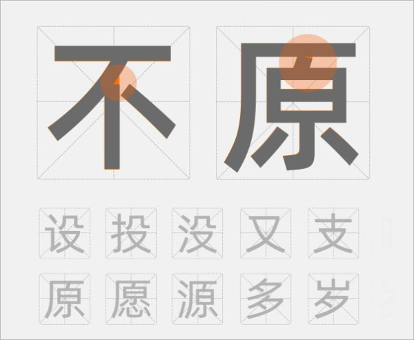 “勺”部件相关字体,调整撇与点的间距