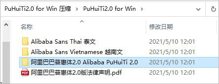 在本站下载解压,得到阿里巴巴普惠体2.0win/mac官方完整软件包;