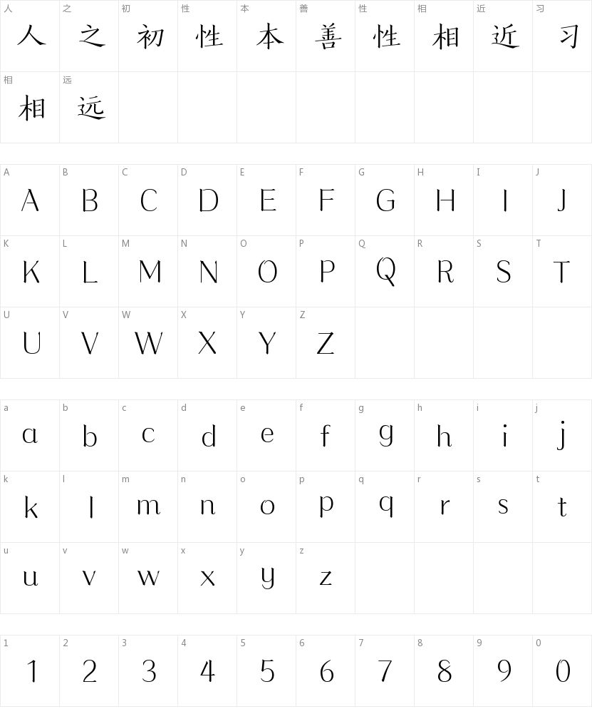 方正风雅楷宋简体字符映射图