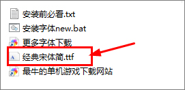 1、在本站下载并解压,得到经典宋体简字体;