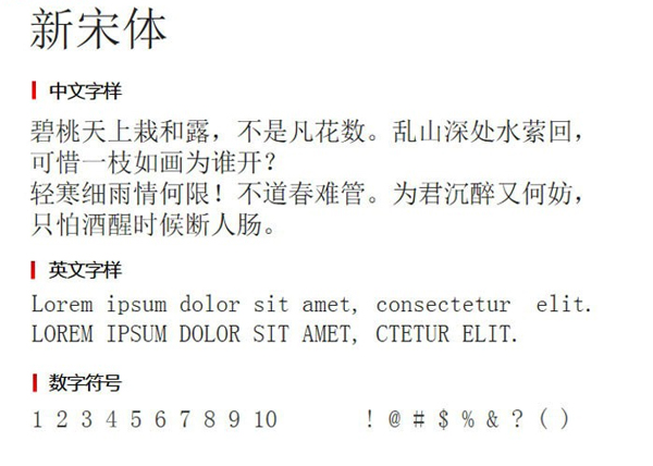 新宋体与宋体的相同,在字符磅重为12一下时新宋体其实与宋体的字形不存在区别,但是在12之上的之后新宋体与宋体中间的区别就是可以明显的体现出来。新宋体的边缘相对于宋体来讲更加的圆滑,并且不失棱角分明。