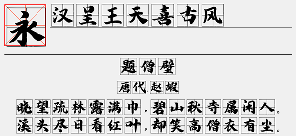 本站汉呈王天喜古风体字体资源仅供个人学习与参考,如需商业使用请到相关官网授权。
