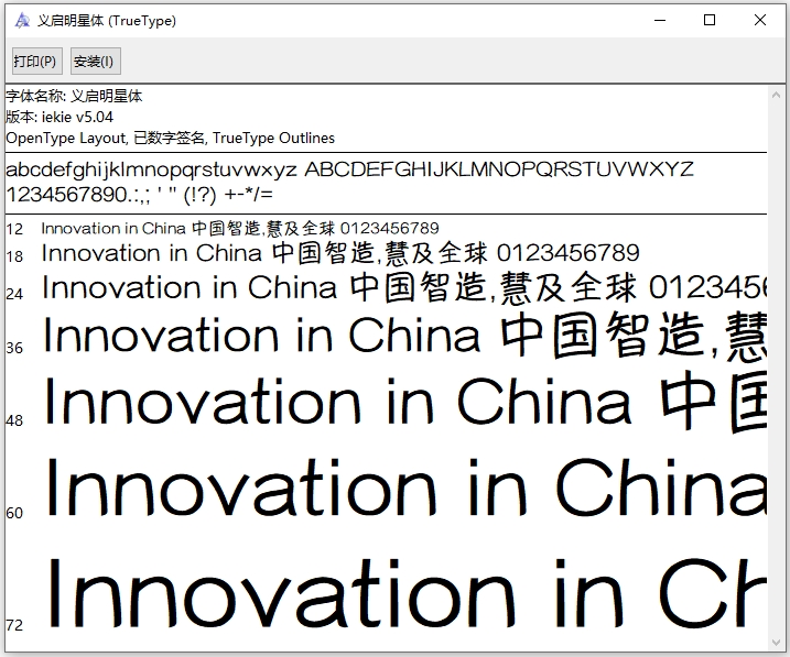 义启明星体是一款非常实用的中文字体,该字体在笔画上尽显随意自由的风范,整体效果给人很大的遐想空间,字体间连接严谨,整体效果出色,可以应用于文本装潢、信息展示、网页设计、篆刻制模、数据制作、装潢设计、计算艺术设计、视觉设计、字帖等一切合法应用场景,有喜欢的朋友可免费下载收藏。