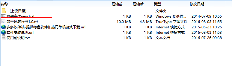 ①在本站下载安装完成之后,解压缩【段宁硬笔行书1.0ttf】