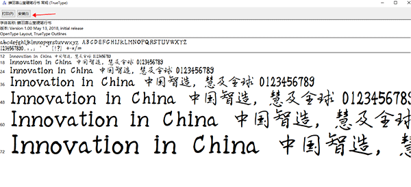 2、双击字体文件,在打开的字体文件界面上点击最上方的“安装”按钮,就可以将该字体安装到系统中