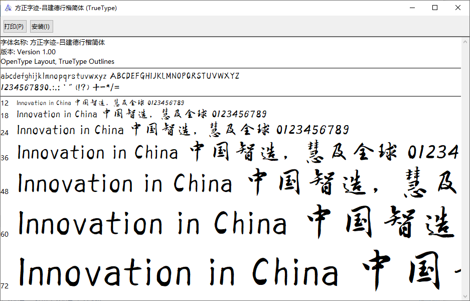 方正字迹-吕建德行楷简体由于使用限制,仅供个人学习与参考使用,如需商业使用请到相关官网授权。