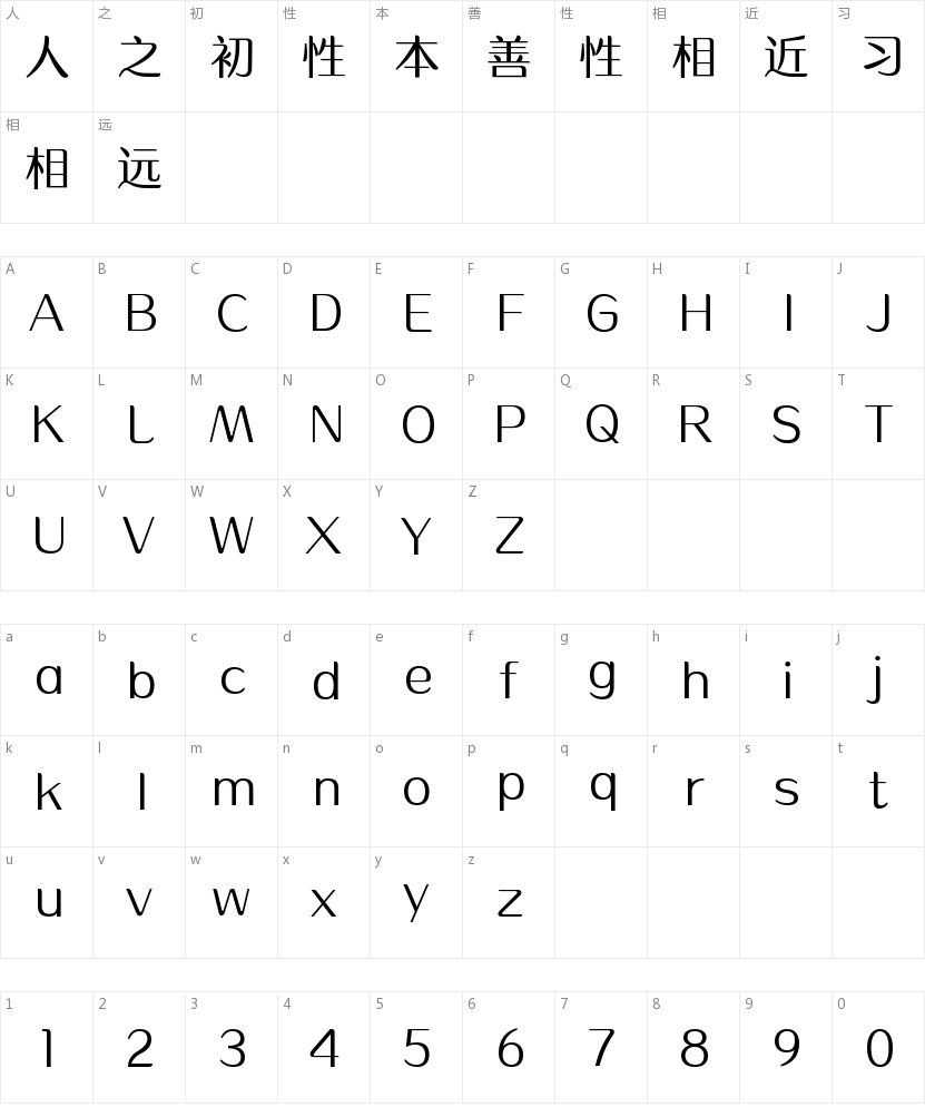 方正水云简体字符映射图