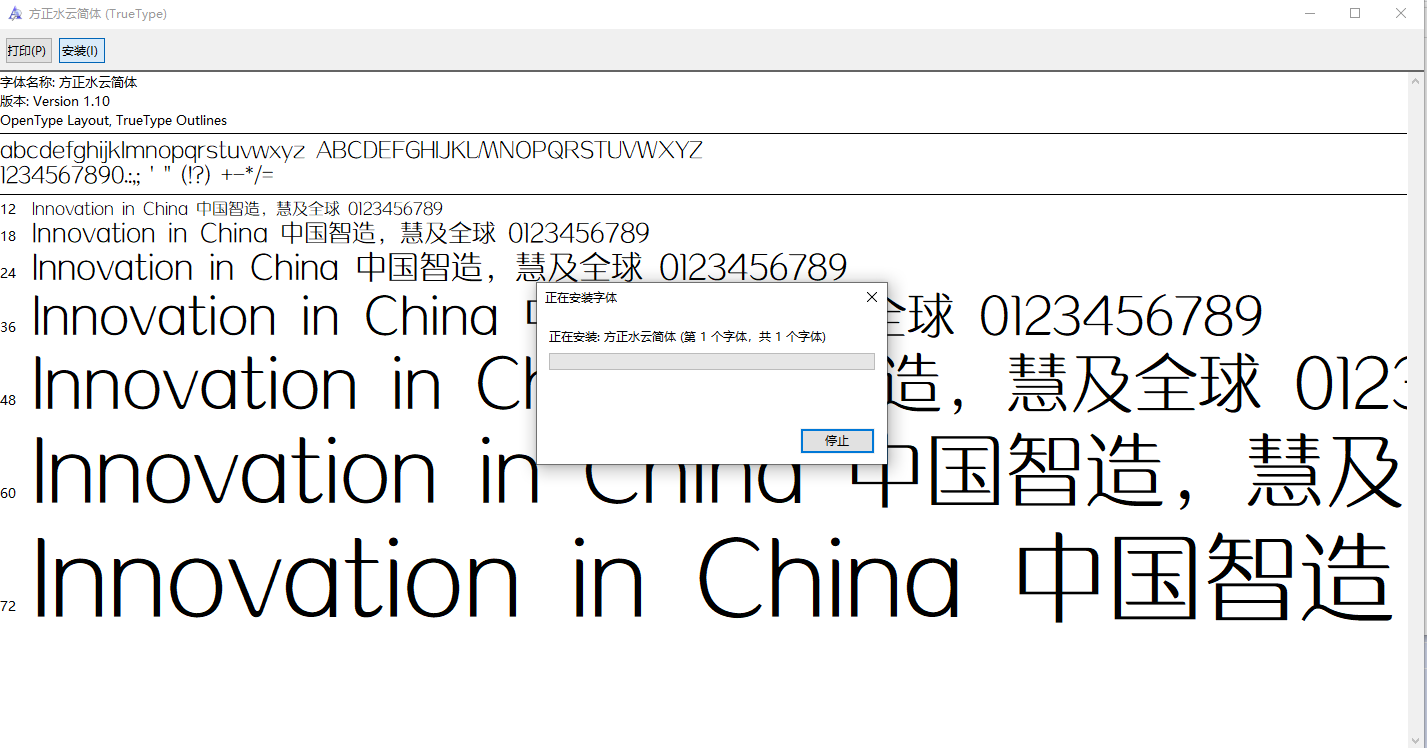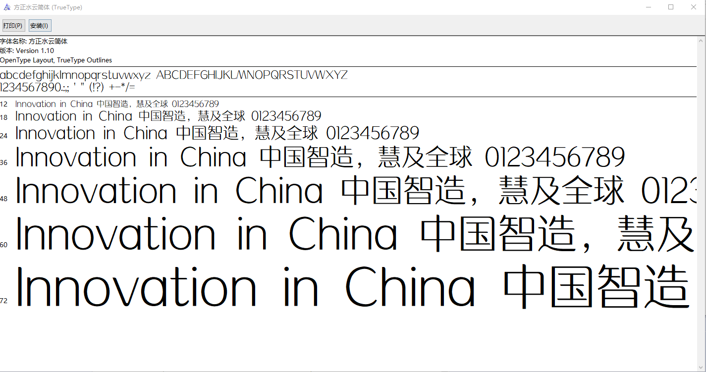 方正水云简体安装方法