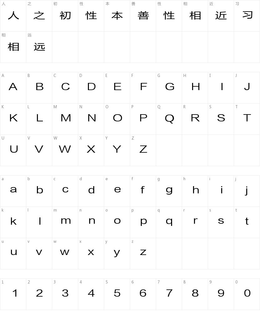 方正兰亭黑扁简体字符映射图