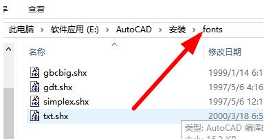 3、将tssdeng2.shx字体文件复制到AutoCAD安装目录下面的fonts目录里;