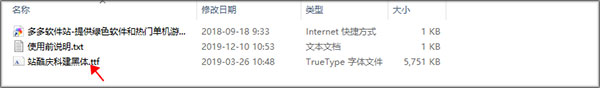 1、在本站下载并解压好压缩包后,双击文件夹中的“站酷庆科建黑体.ttf”;